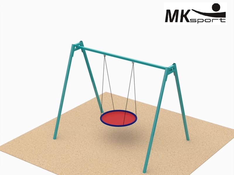 Качели – главный атрибут любой детской площадки или двора. Данная модель предполагает монтаж качели с большой площадью сидения типа “гнездо” или “паутина”. Их главное преимущество состоит в том, что в корзине с комфортом могут расположиться несколько человек. Каркас качели изготовлен из стального профиля 60*60*2 мм и 60*30*2 мм. Цвет конструкции бирюзовый. Корзина не входит в стандартную комплектацию и приобретается отдельно.